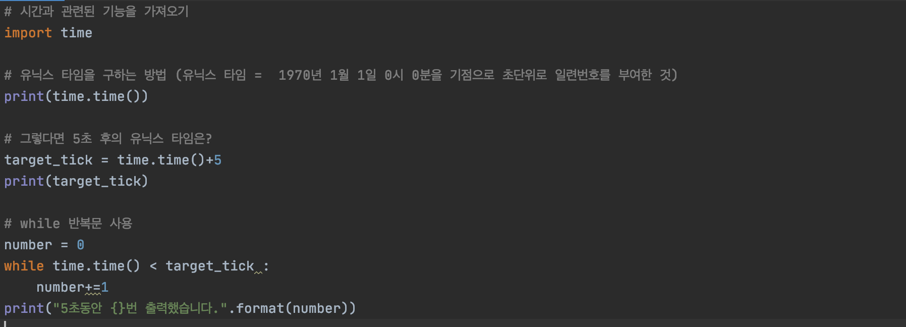 2) 5초 동안 반복문이 몇번 반복되는지 확인하기