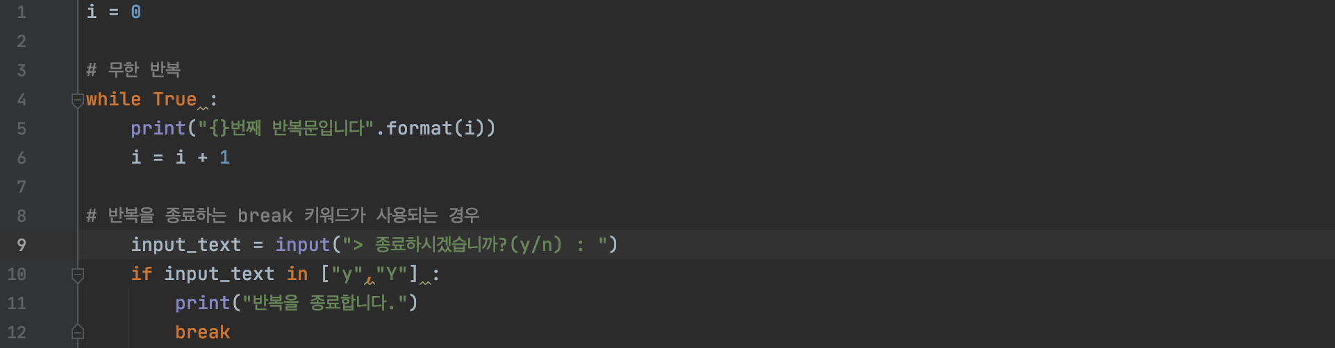 while 반복문이 사용되는 몇가지 예를 더 알아보겠습니다.