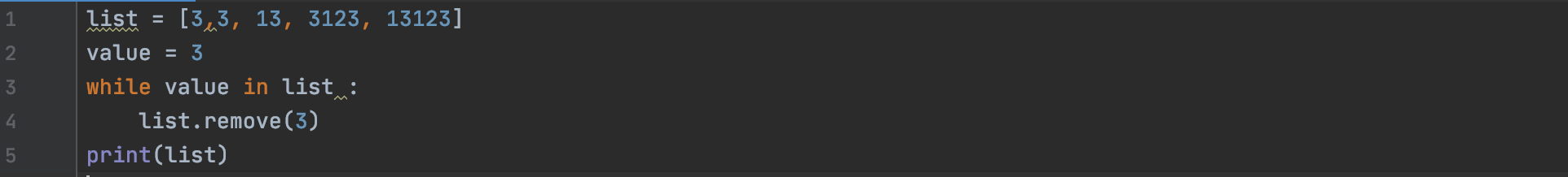위의 코드가 실행된 화면을 보면 3이라는 값을 가진 요소 두개가 한번에 모두 삭제된 것을 확인할 수 있습니다.