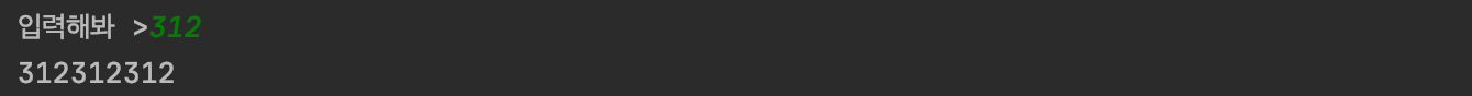 이 때 주의해야할 점은 input 함수로 입력하는 것이 숫자여도 문자열로 인식하기 때문에 곱셈이 되는 것이 아니라 3번 반복해줍니다.
