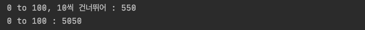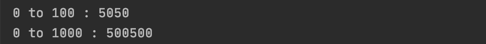 위의 코드 입력 화면을 보면 output 을 가지고 함수의 초기 실행 위치로 되돌아가 다음 정수를 더해주게 만드는