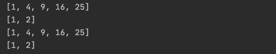 리스트의 요소들이 제곱된 것이 출력된 것을 확인할 수 있었습니다.