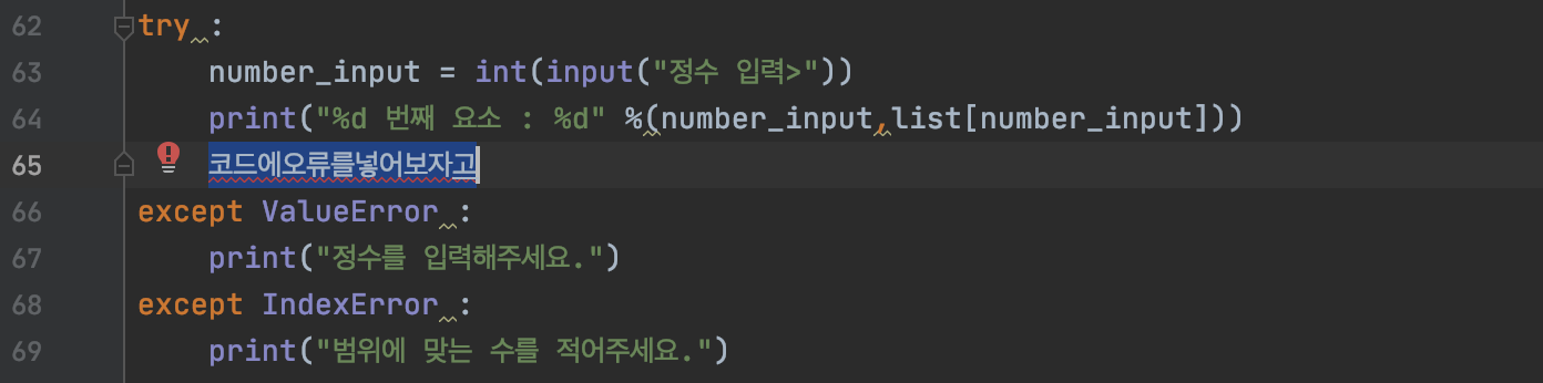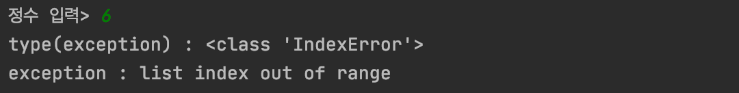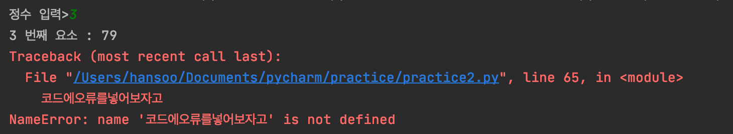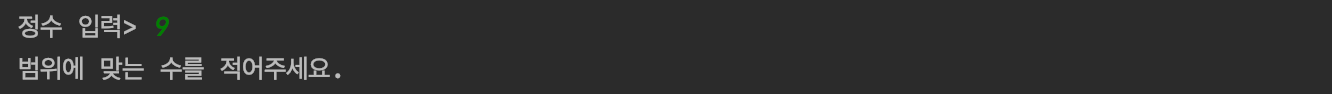 범위에서 벗어난 수를 입력하면 아래와 같은 오류가 나타납니다.