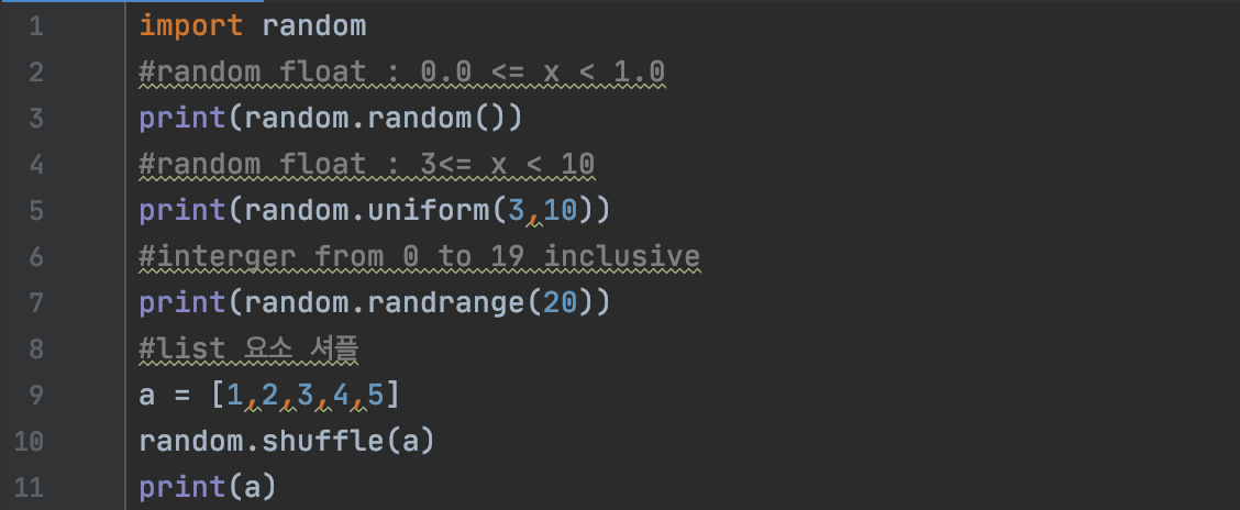 아 현재 시간을 구할때는 datetime 모듈을 사용했고, 랜덤으로 수를 뽑을 경우에는 random 모듈을 사용했구나.