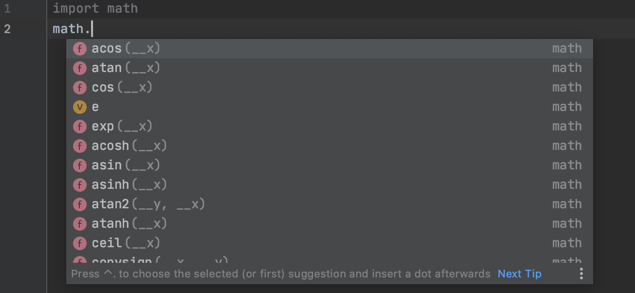 아래와 같이 자동완성기능을 통해 확인할 수 있습니다.