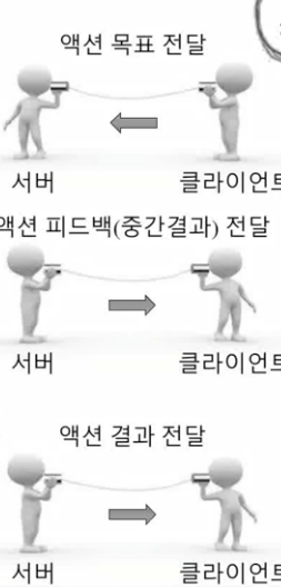 → 양방향의 메시지 통신 방법인데, 중간에 피드백 가능