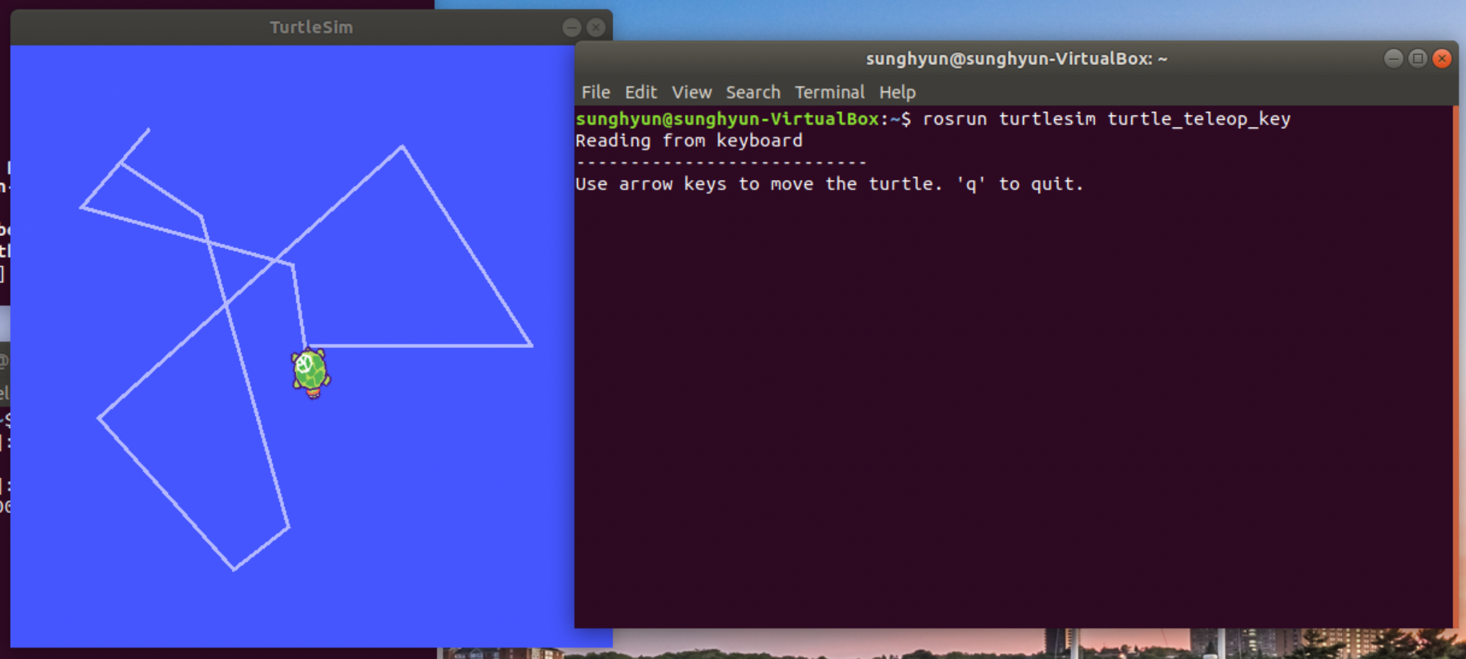 나는 몰라서 처음에 turtlesim 실행창에 함...ㅠㅠ)