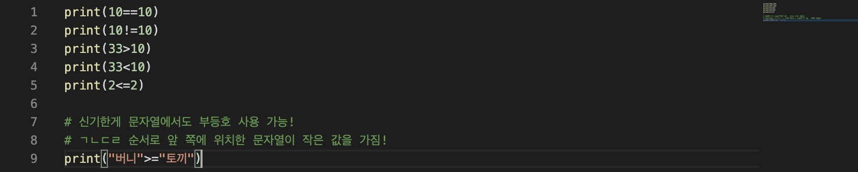 위의 비교 연산자들을 통하여 명제의 참, 거짓을 판단할 수 있습니다.